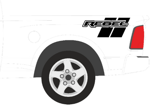 Set of 2 Custom Rebel Text with stripes Dodge RAM SRT 1500 Performance Full Sport Decal