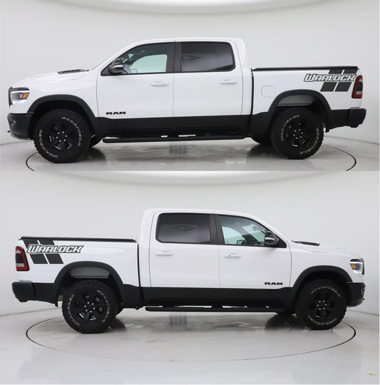 Set of 2 Custom WARLOCK Text with stripes Dodge RAM SRT 1500 Performance Full Sport Decal