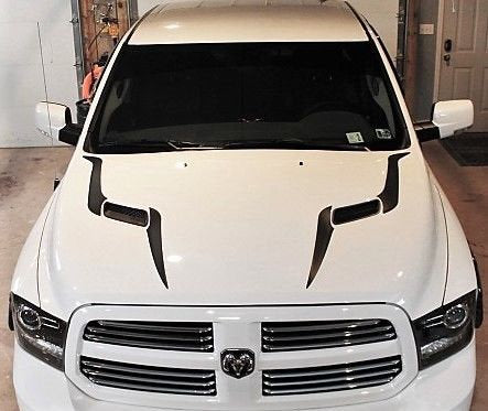 GLOSS BLACK - 2017 - 2019 Dodge Ram 1500 Rebel Hood inlay Decal Stripe